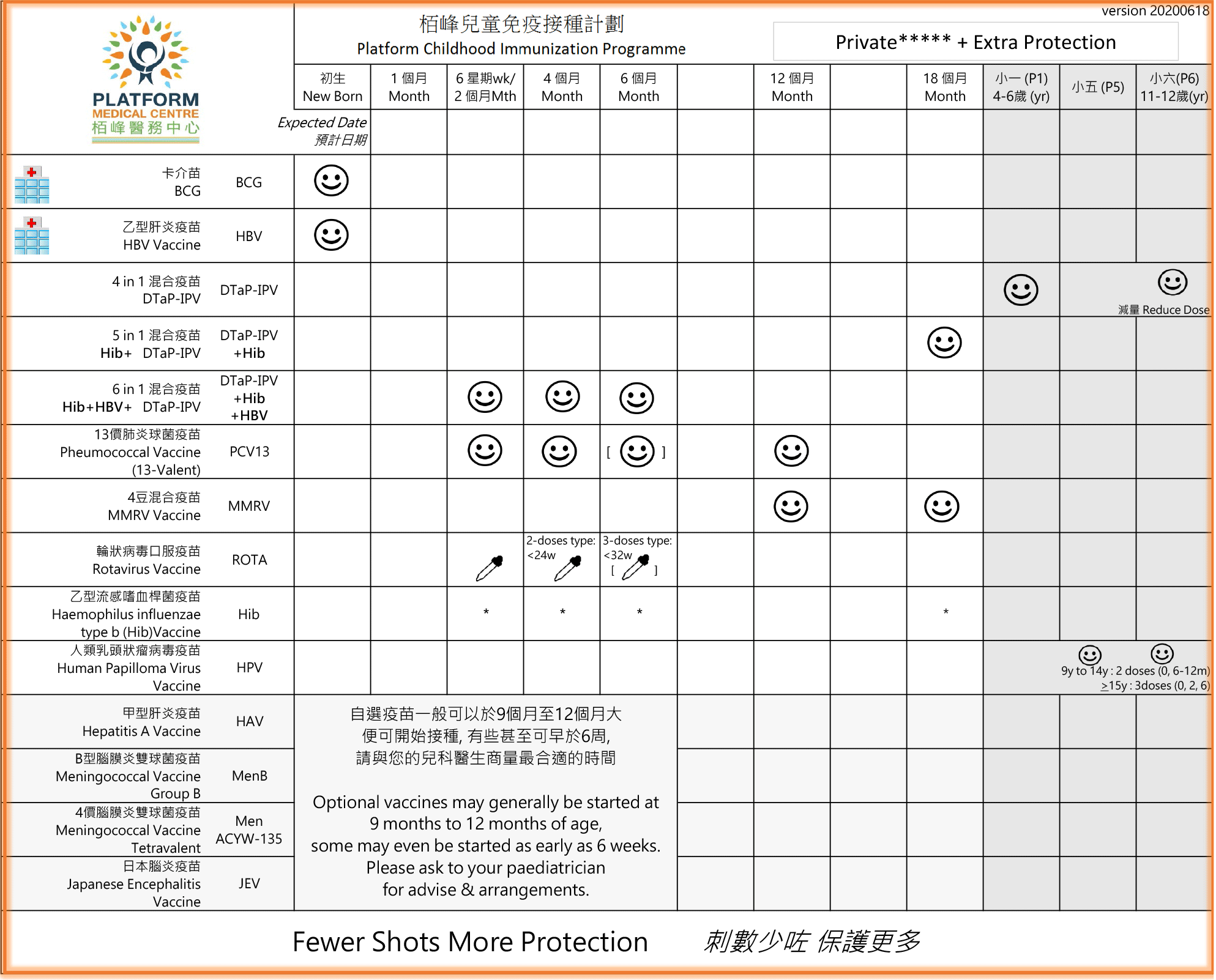 以下是由栢峰醫生建議的疫苗計劃, 歡迎隨時與我們的醫生了解詳情。